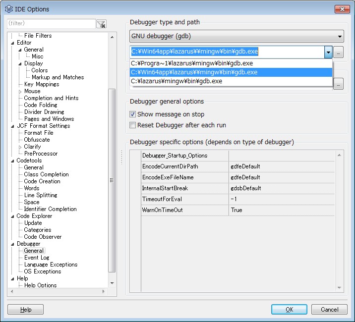 以前にもLazarusをインストールしたことがあると、ビルド&デバッグ実行時に、